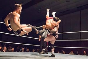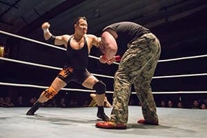 Surprisingly again, Hooven wasn’t intimidated when a one-on-one match was announced between the two at Aftershock, and what’s more, Hooven got another win! After circling the ring a number of times trying to get his hands on the much smaller fan favorite from South Philly, Japan, Bulk Nasty was outsmarted and embarrassed again! Hooven had slid in the ring just before the referee’s ten count, but Bulk didn’t make it in time! Dan Hooven, whether by count-out or not, defeated Bulk Nasty one-on-one at Aftershock.