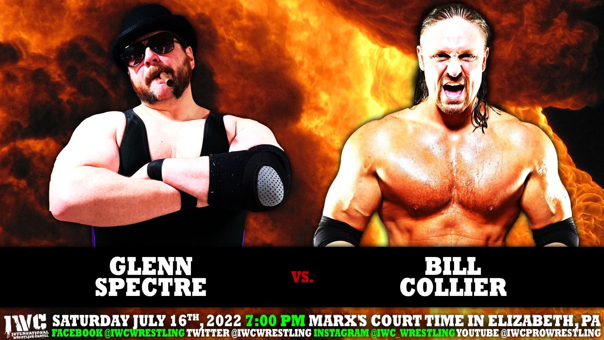 IWC Heavyweight Champion Elijah Dean made it clear ‘Big Time’ Bill Collier has to start at the back of the line if he wants a championship opportunity. Former IWC Tag Team Champion Glenn Spectre was eager to be the first in Bill Collier’s way, likely hoping to jump to the head of the line with a win over Collier. Can The Big Boss handle a not-so-thrilled Big Time on July 16th!?