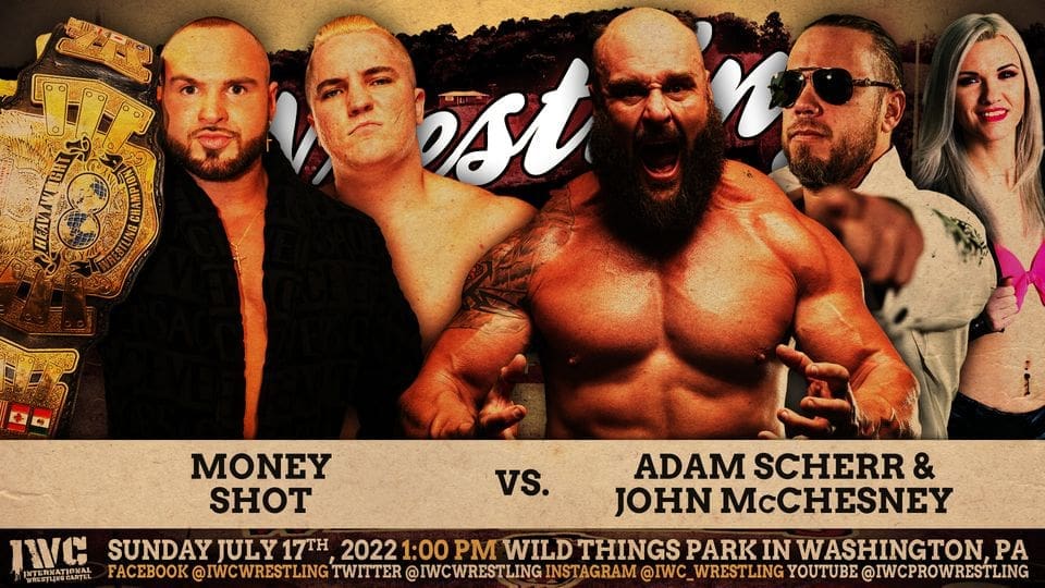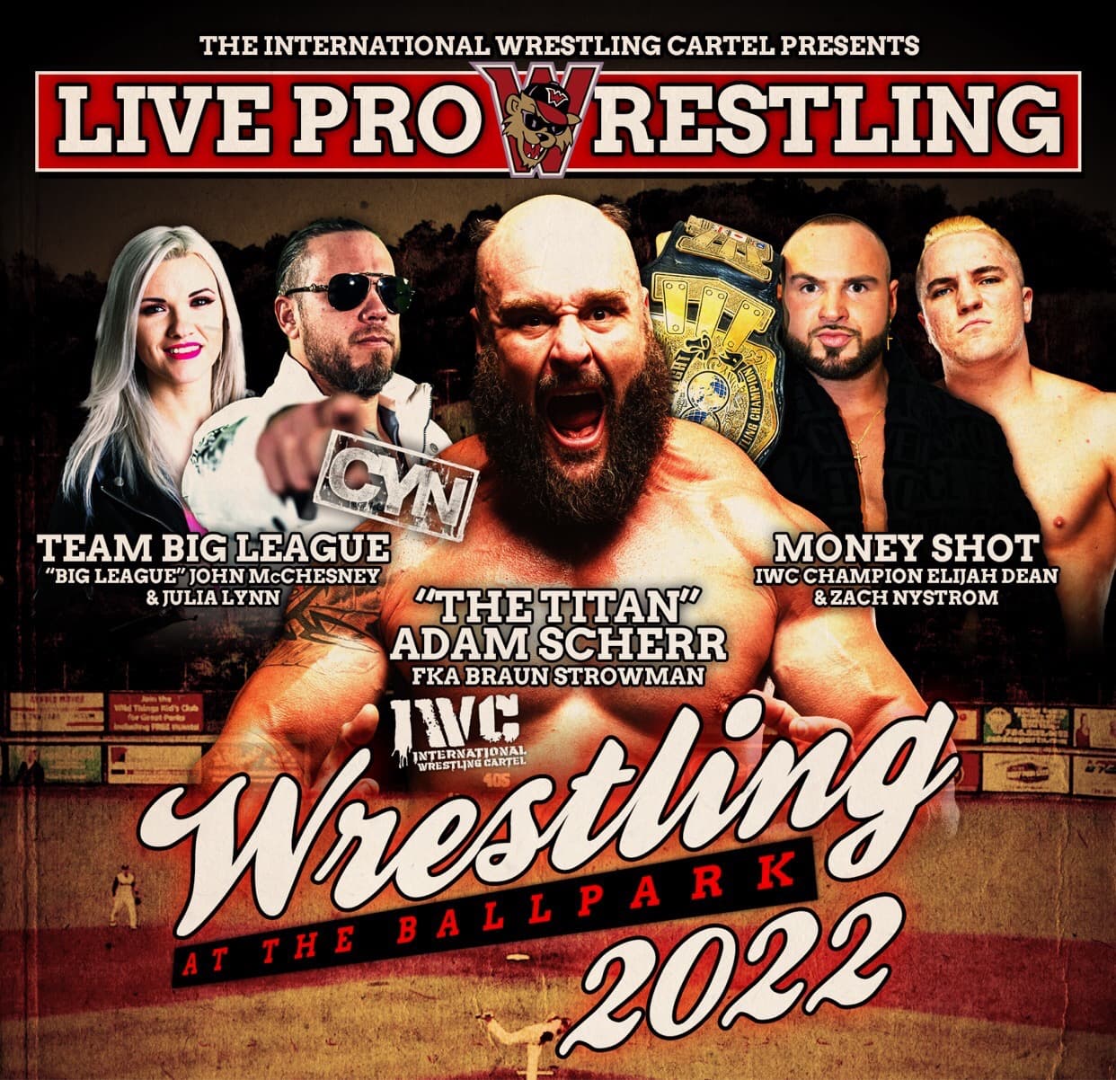 Then, on Sunday July 17th, IWC returns to the Washington Wilds Thing baseball stadium for WRESTLING AT THE BALL PARK with a TITAN-sized main event when Adam Scherr, former WWE Superstar Braun Strowman, teams up with IWC legend John McChesney to take on one of the best IWC Tag Teams of all time – Money Shot! Enjoy the weather because this event is outdoors and the action kicks off at 1:00 PM!!