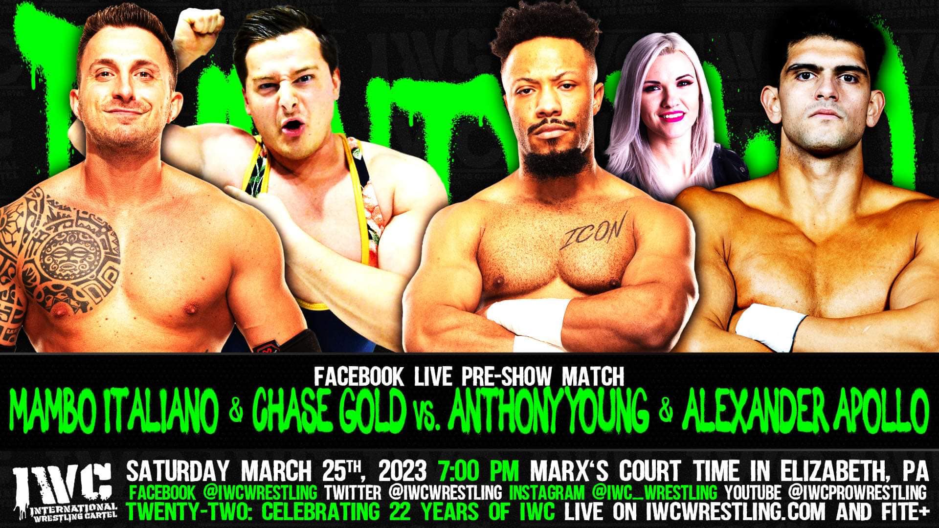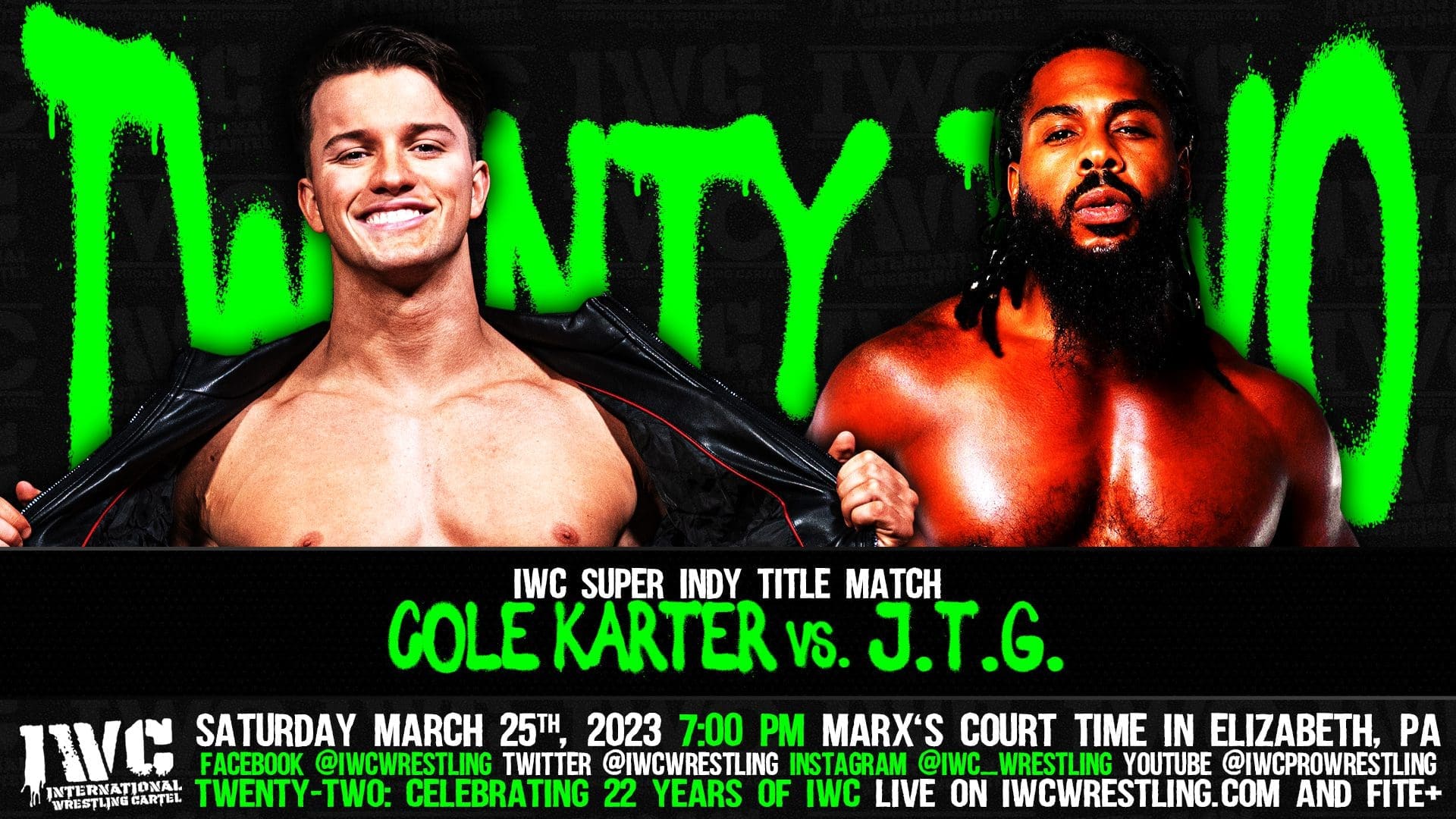 Tickets to IWC TWENTY TWO on Saturday March 25th are available by CLICKING HERE!