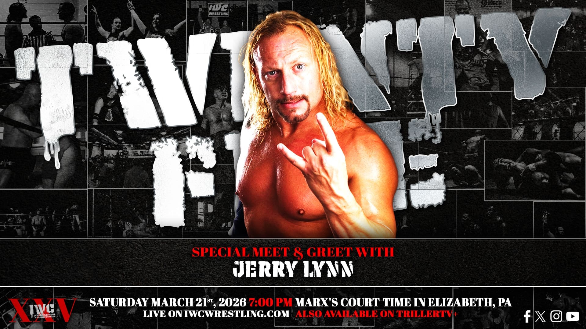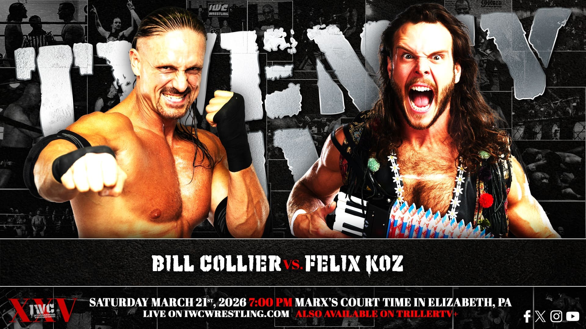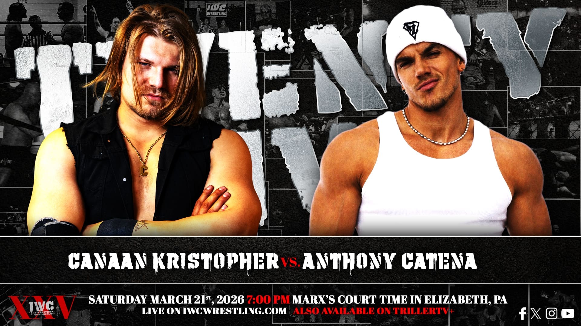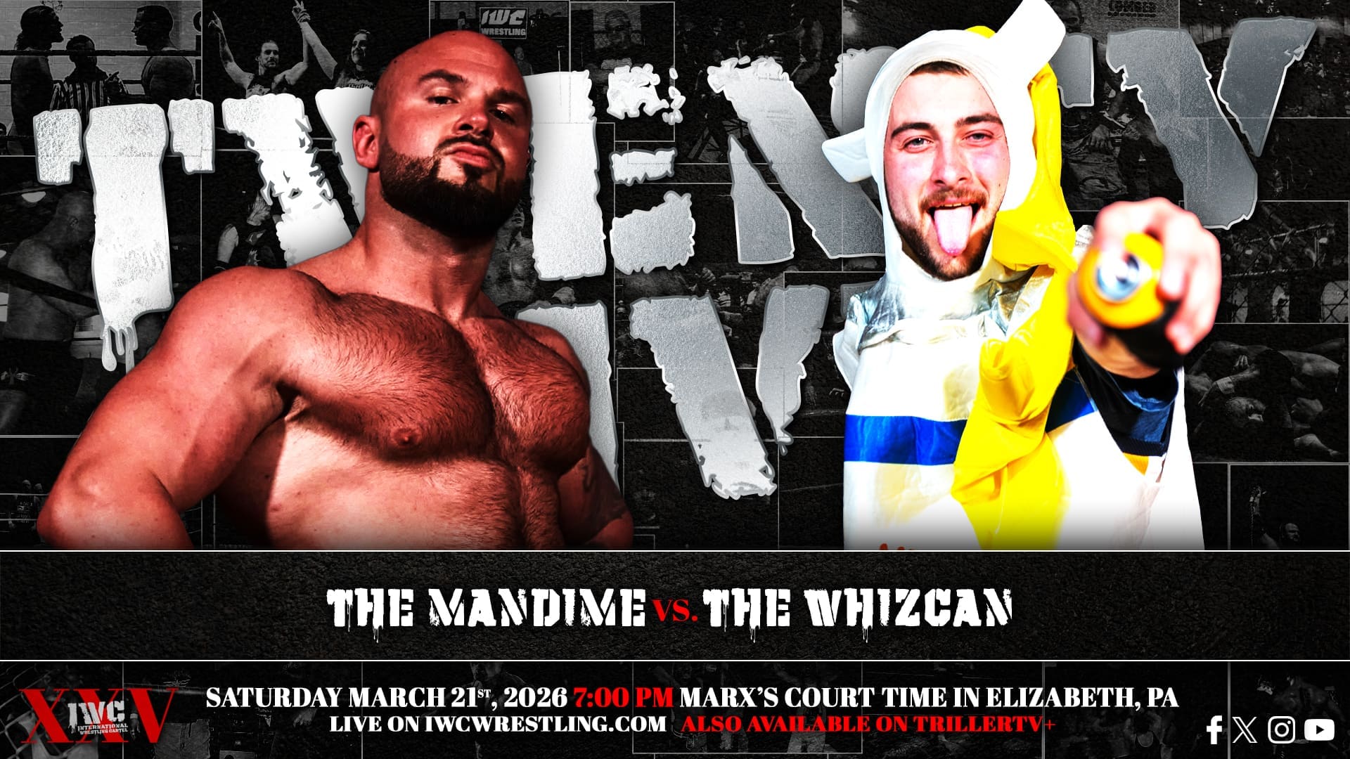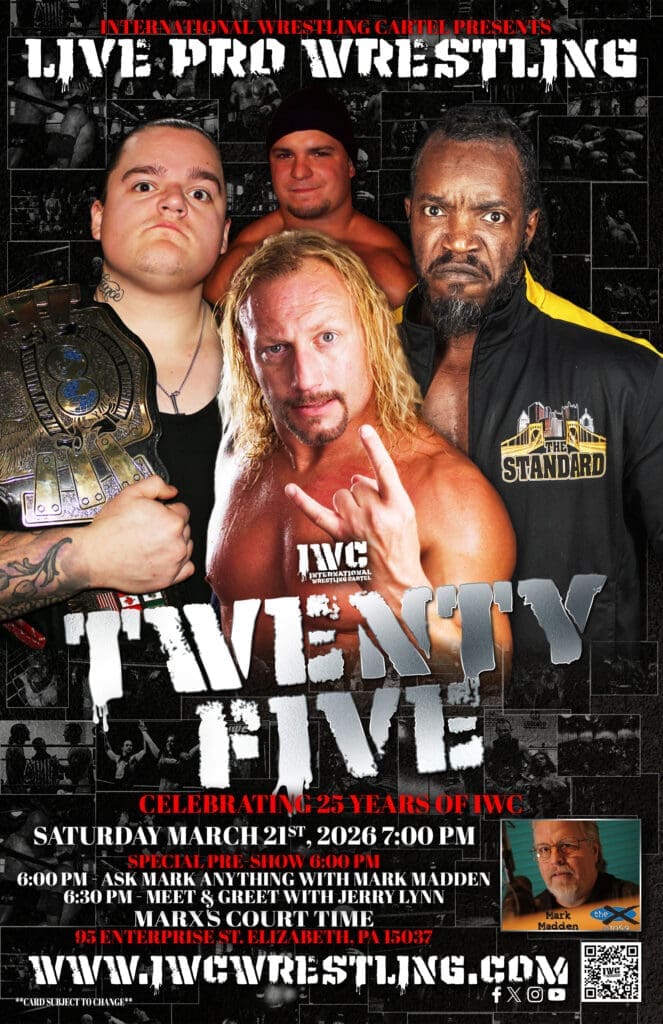 IWC turn TWENTY-FIVE on Saturday night March 21st, 2026! Come celebrate our silver anniversary LIVE at Marx’s Court Time in Elizabeth, PA at 7:00 PM. If you can’t join us in person for this huge milestone, the event will be streaming live on the IWC Network and TrillerTV+!