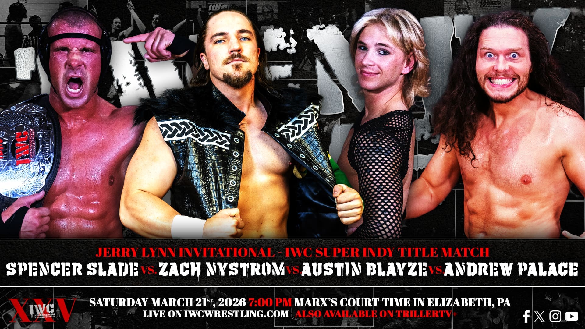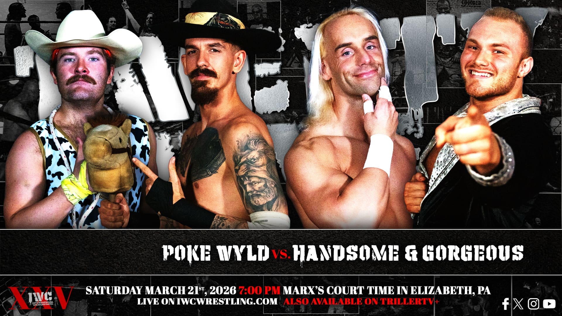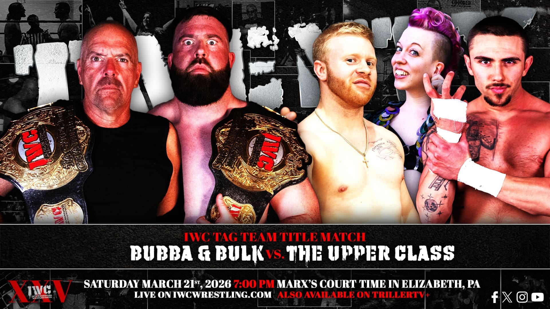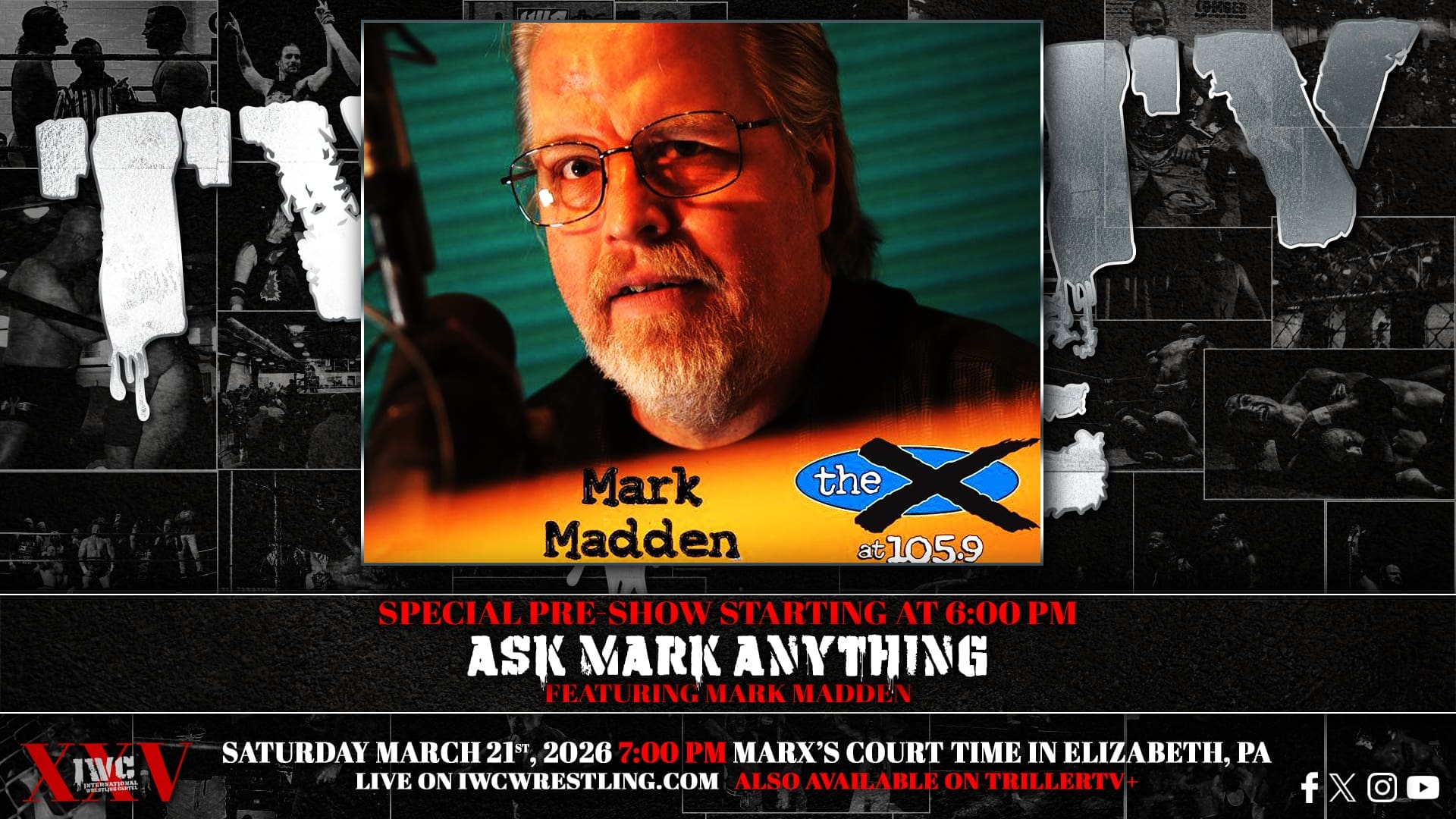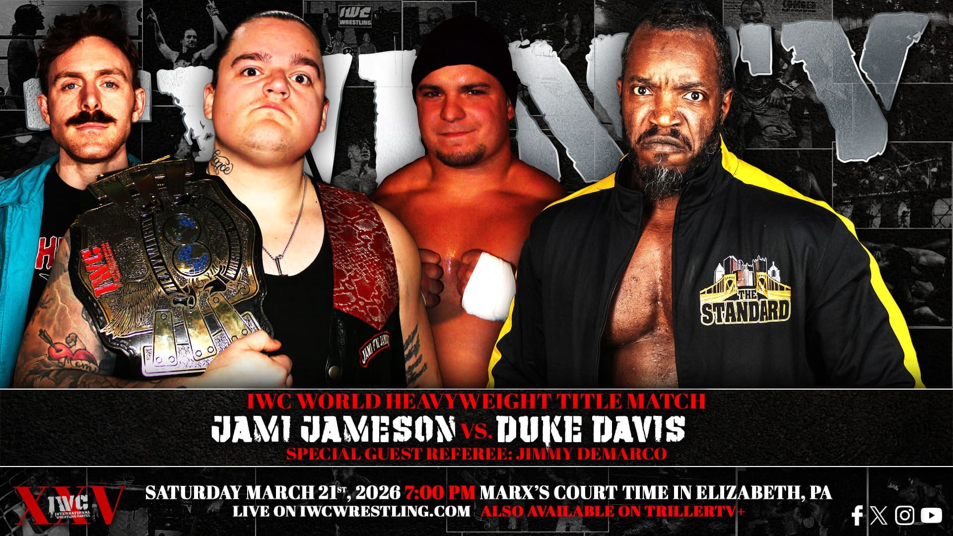 IWC turn TWENTY-FIVE on Saturday night March 21st, 2026! Come celebrate our silver anniversary LIVE at Marx’s Court Time in Elizabeth, PA at 7:00 PM. If you can’t join us in person for this huge milestone, the event will be streaming live on the IWC Network and TrillerTV+!