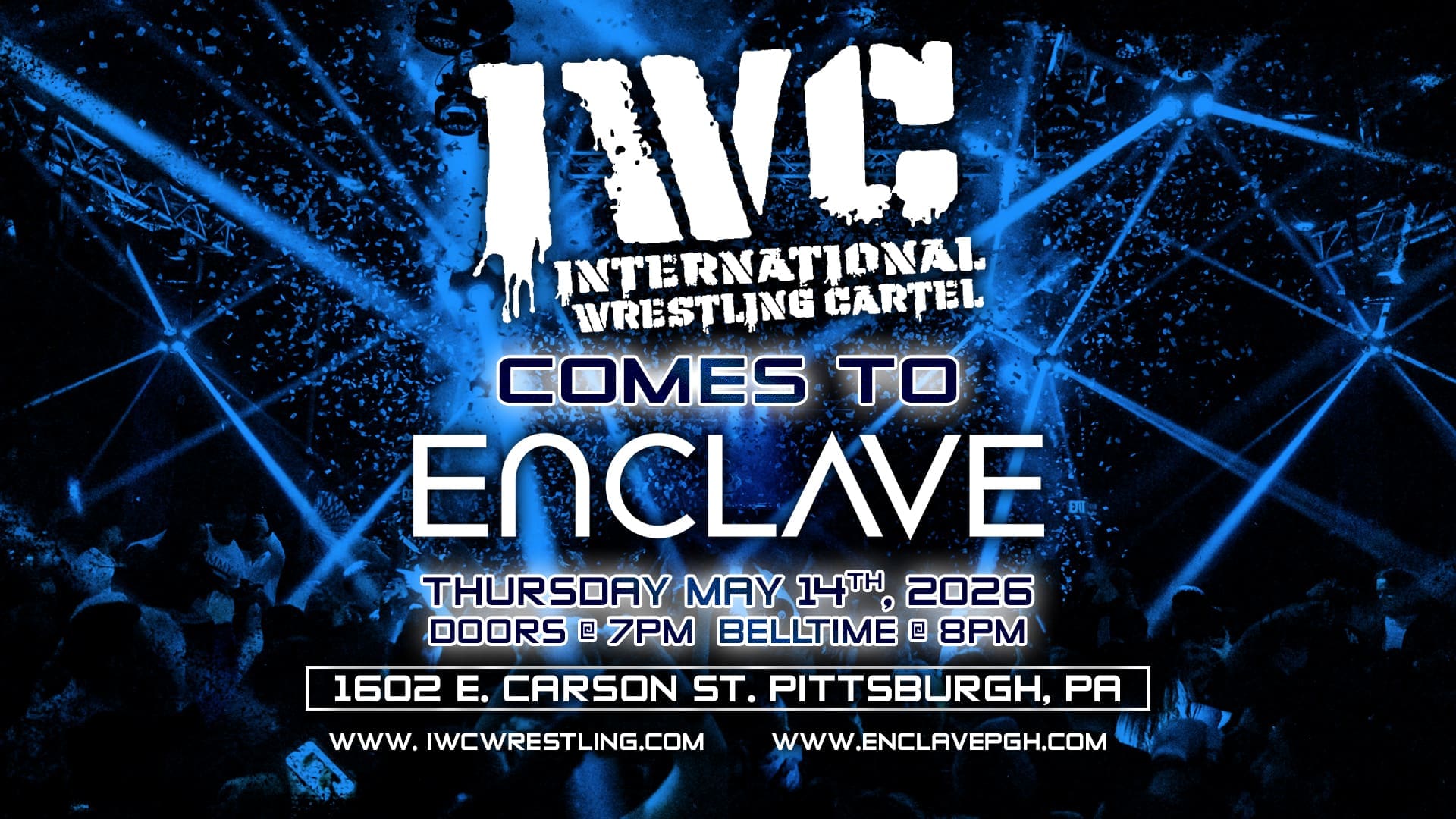 IWC at Enclave – May 14th, 2026 Thursday May 14th, 2026 8:00pm @ Enclave 1602 E. Carson St., Pittsburgh, PA Buy Tickets Now! Stream it LIVE on The IWC Network or TrillerTV+